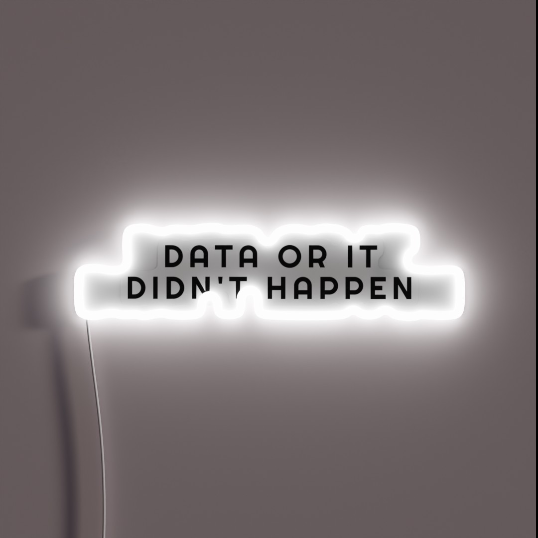 Data Or It Didn’t Happen – A striking RGB neon sign that combines bold typography with a witty statement, perfect for tech enthusiasts and skeptics alike, adds a unique touch to any room or office.