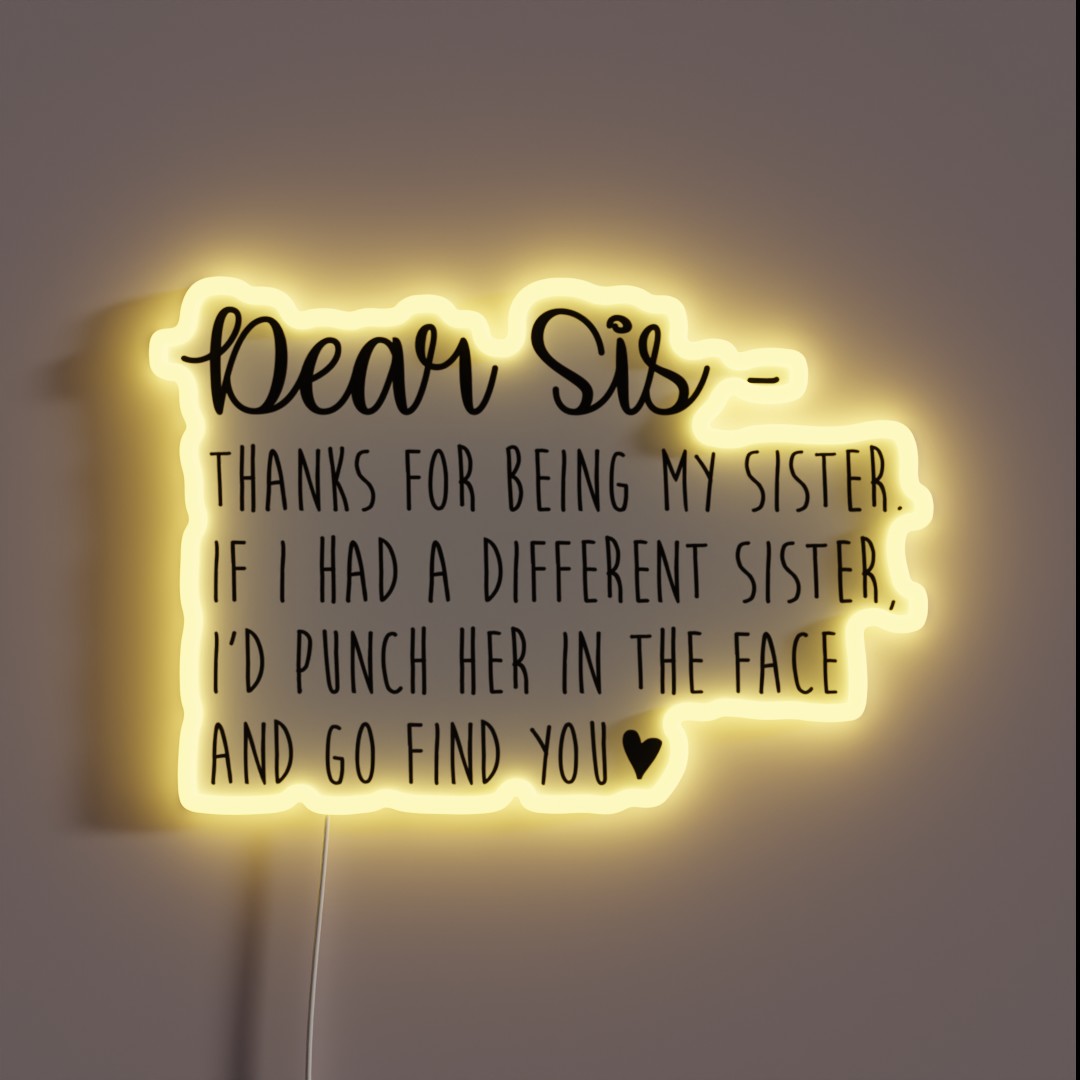 Add a touch of personality to your space with the Dear Sis RGB Neon Sign, a vibrant and customizable LED light display that can be easily hung on any wall or door.