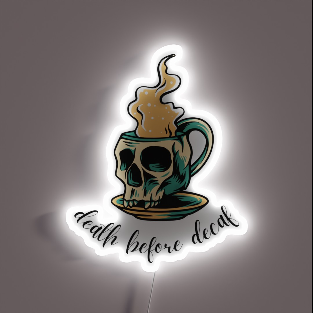 Death Before Decaf Slogan Skull Cup Mug And RGB Neon Sign