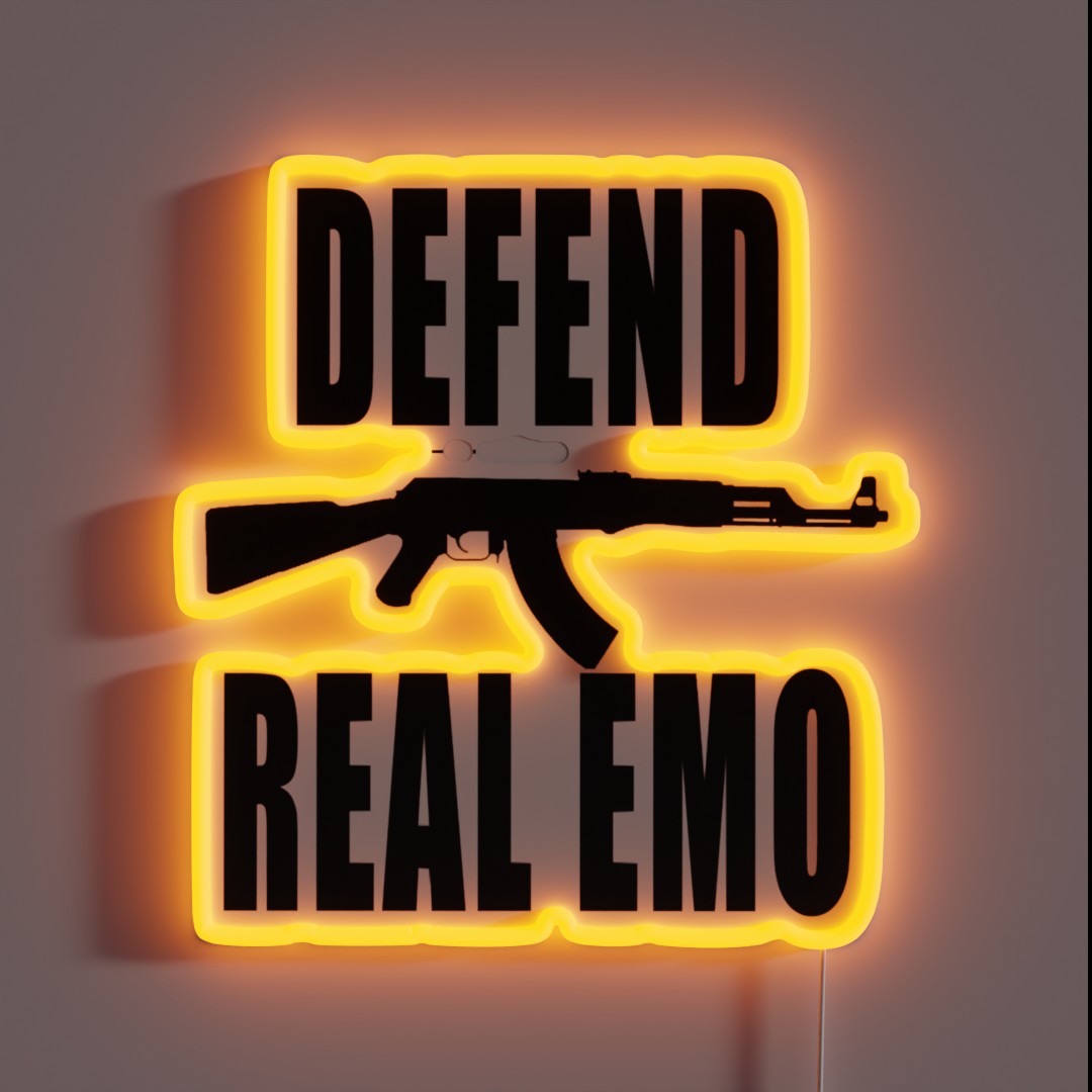 Add a touch of nostalgic emo flair to your space with our DEFEND REAL EMO MIDWEST EMO RGB neon sign, a vibrant tribute to the iconic Midwest emo scene and its unapologetic spirit.