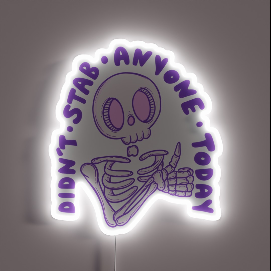 Didn T Stab Anyone Today Thumbs Up Skeleton RGB Neon Sign