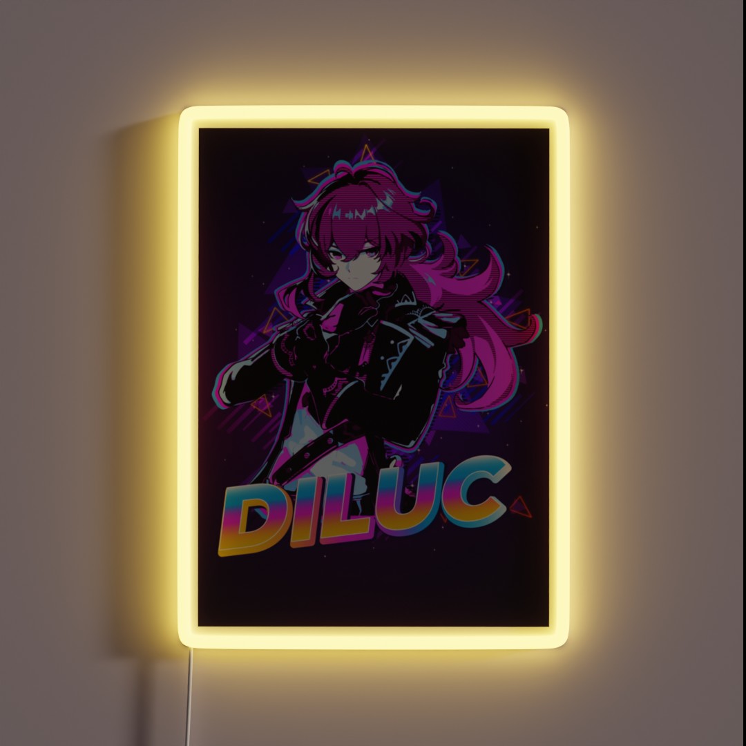 Dazzle your gaming setup with this stunning Diluc Genshin Impact RGB neon sign, perfectly capturing the essence of the iconic character in vibrant, customizable neon hues.