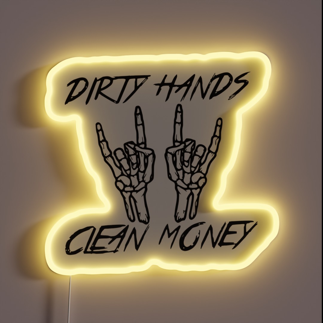 Dirty Hands Clean Money Skeleton Hand Funny RGB Neon Sign