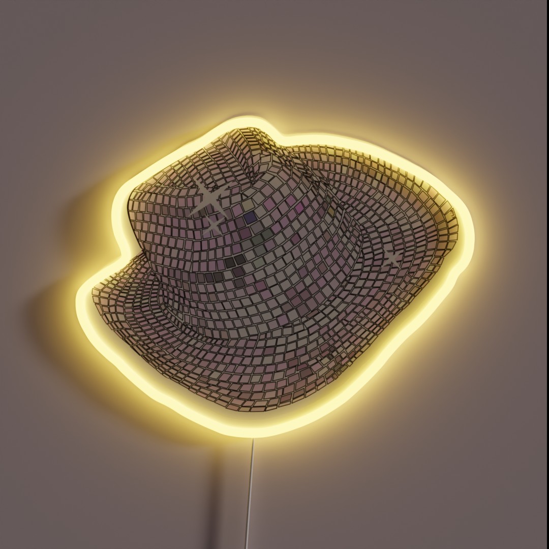 **Disco Ball Mirrored Cowgirl Hat RGB Neon Sign**