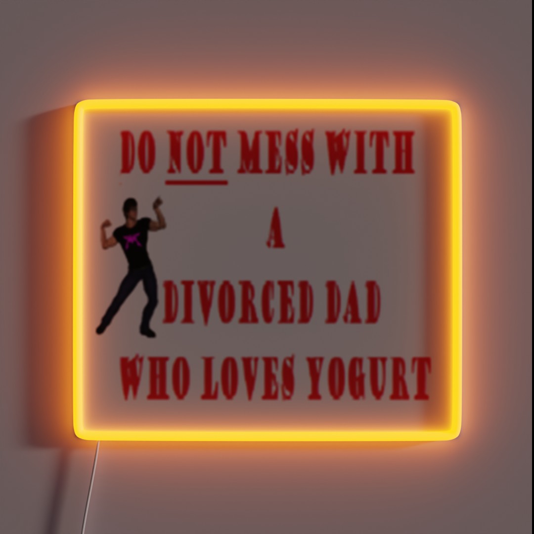 Embracing independence, this ‘Don’t Mess with a Divorced Dad who Loves Yogurt’ RGB Neon Sign is a quirky way to express your post-breakup pride.