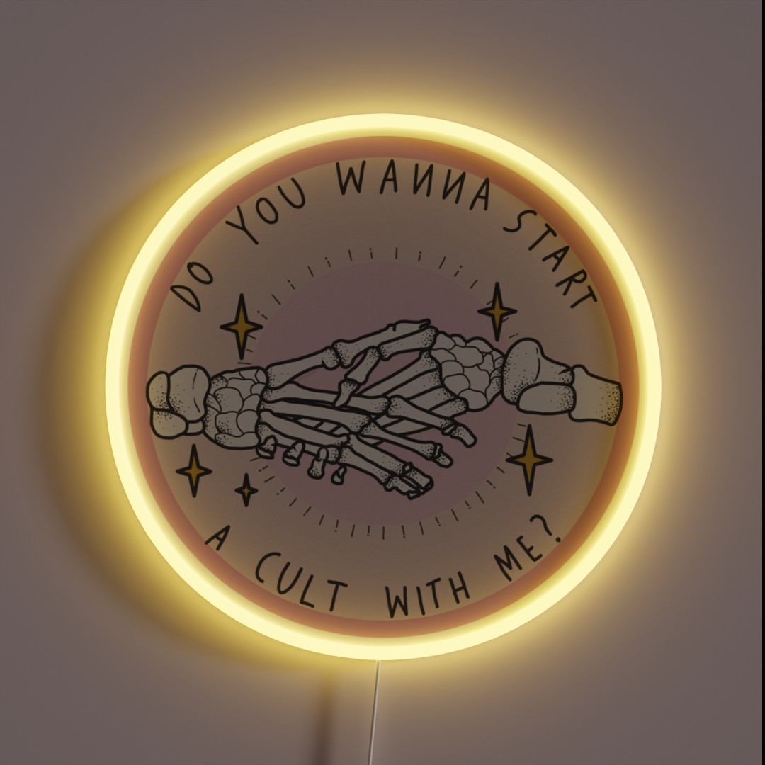 Kickstart a mesmerizing movement with our ‘Do You Wanna Start a Cult With Me’ RGB Neon Sign. A vibrant declaration of individuality and nonconformity, this eye-catching piece is perfect for those who dare to be different.