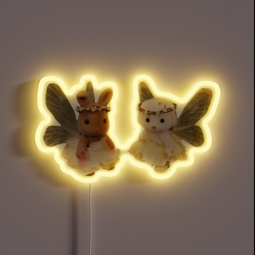 Dog And Bunny Fairy Calico Critters RGB Neon Sign
