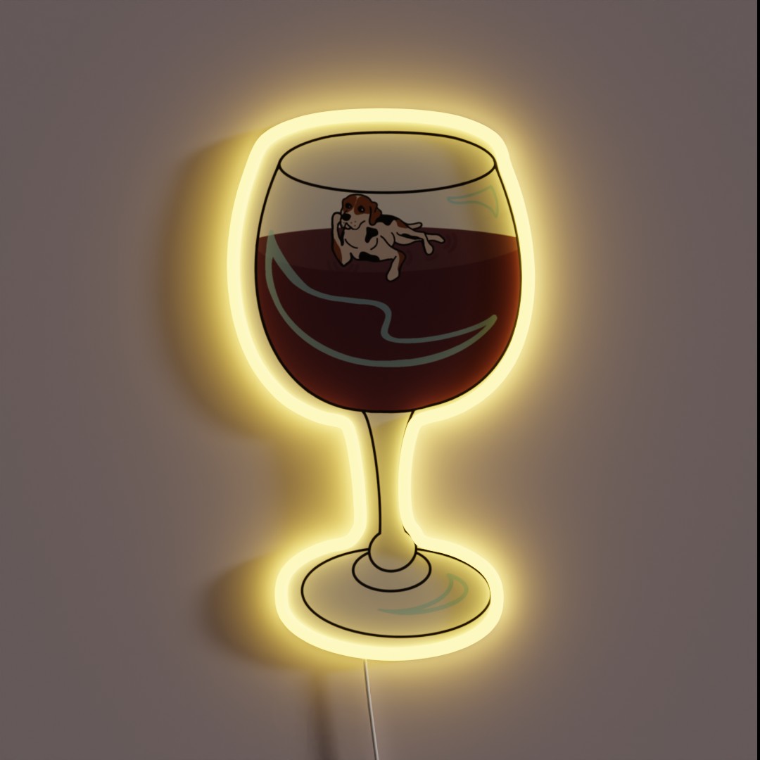 Dine in style with this unique and quirky neon sign featuring a dog floating in a wine glass, bringing a pop of colorful fun to any room.