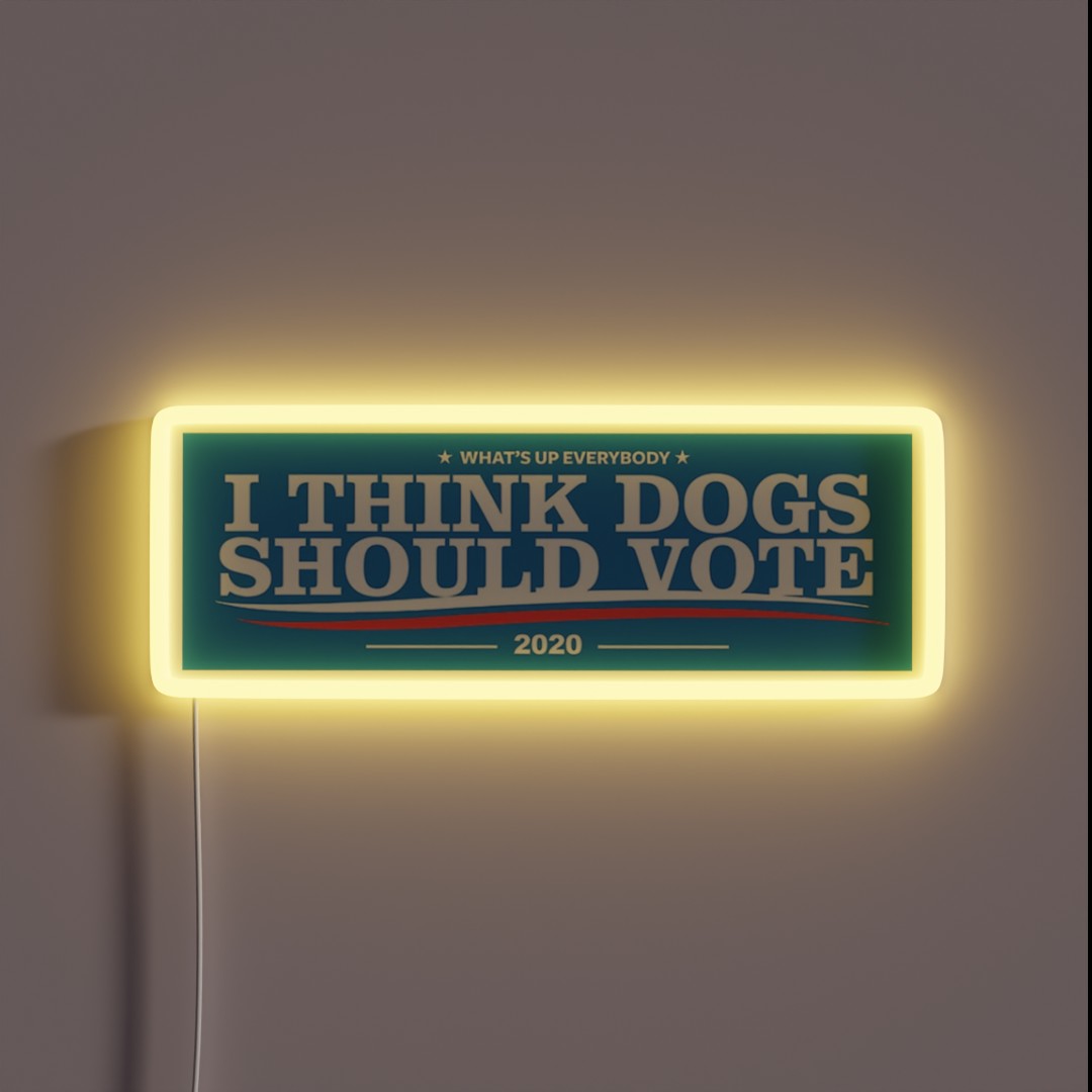 Elevate any room with this Dogs in Politics 2020 RGB Neon Sign, a unique and eye-catching tribute to our canine companions’ potential bid for office.