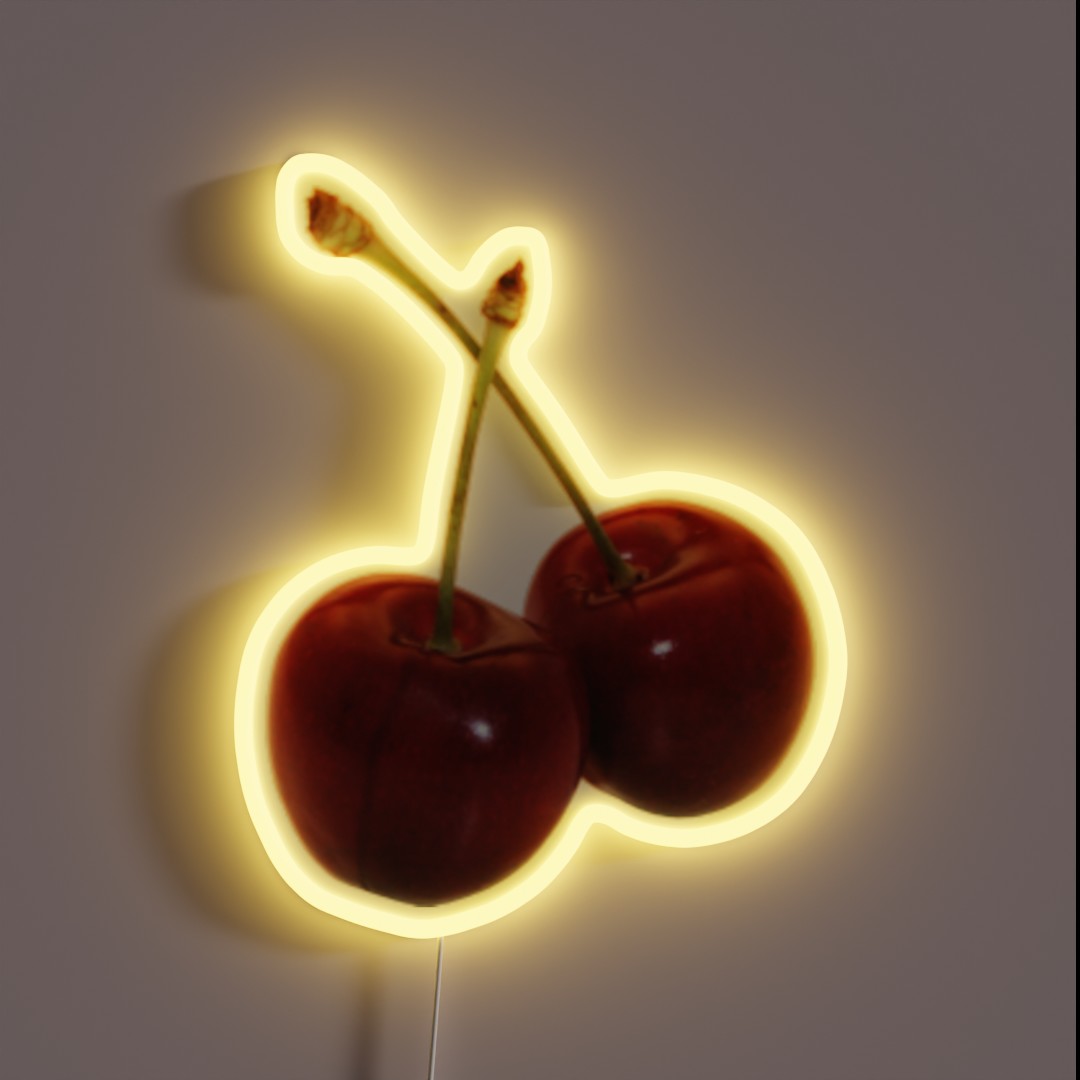Add a pop of color and tech-savviness to any room with our Double Cherry RGB Neon Sign, a vibrant and eye-catching LED display that shines bright in mesmerizing rainbow hues.