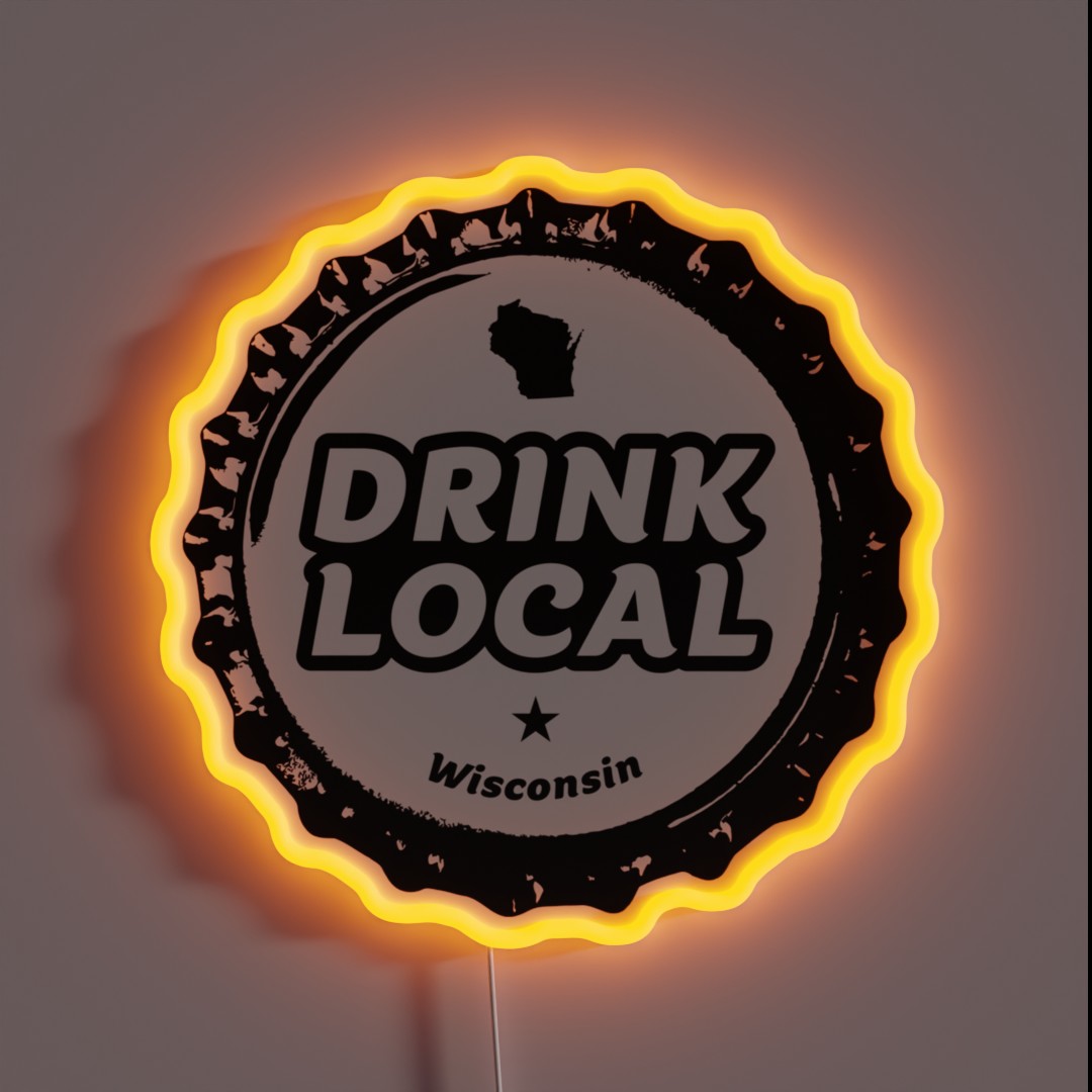 Drink Local Wisconsin Craft Beer Bottle Cap RGB Neon Sign