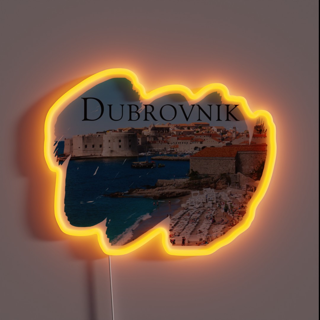 Experience the breathtaking beauty of Dubrovnik with our vibrant RGB neon sign featuring the city’s stunning beach and old town views.