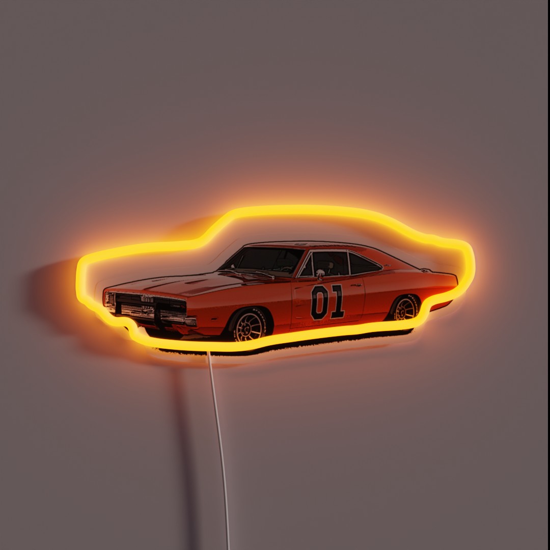 Rev up your home decor with this vibrant RGB neon sign featuring the iconic General Lee car from The Dukes of Hazzard. Perfect for any fan of the classic TV show.