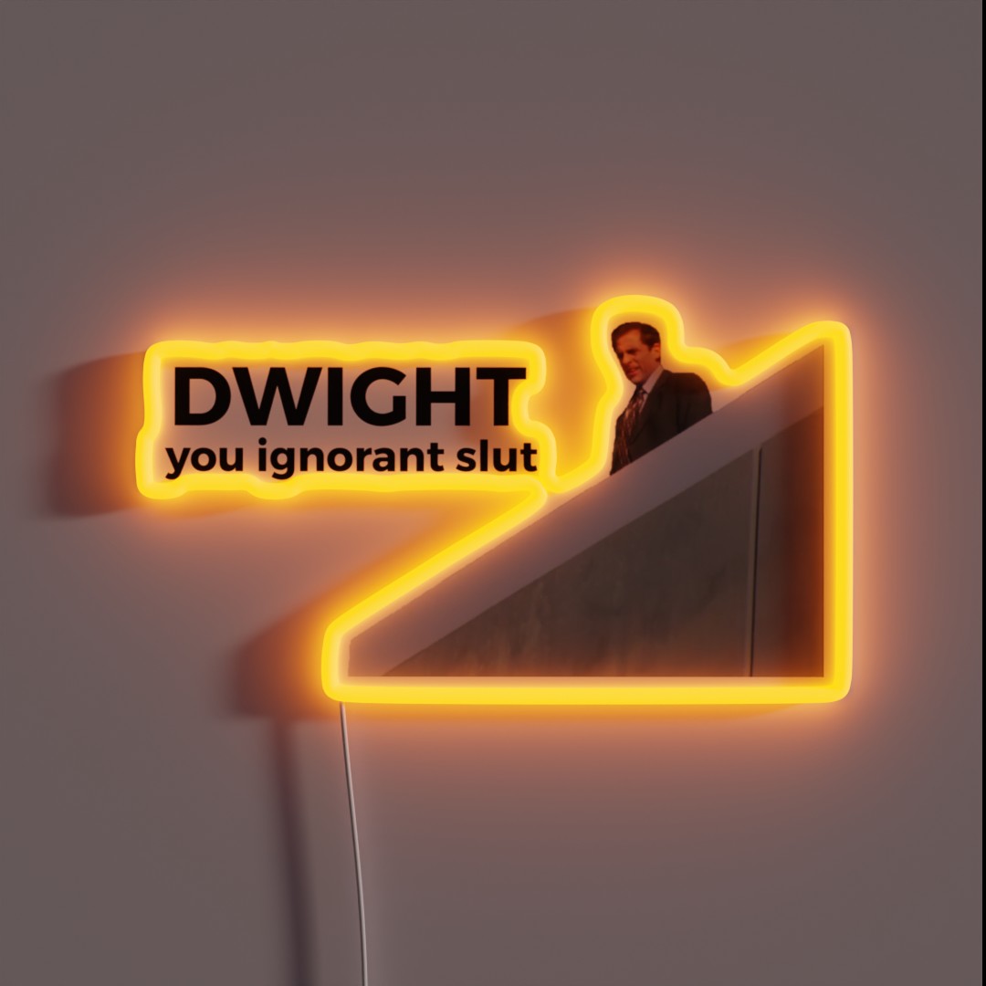 So why settle for boring decor when you can have a little bit of sarcasm and humor? Get your Dwight You Ignorant Slut RGB neon sign today and add some much-needed personality to your workspace!
