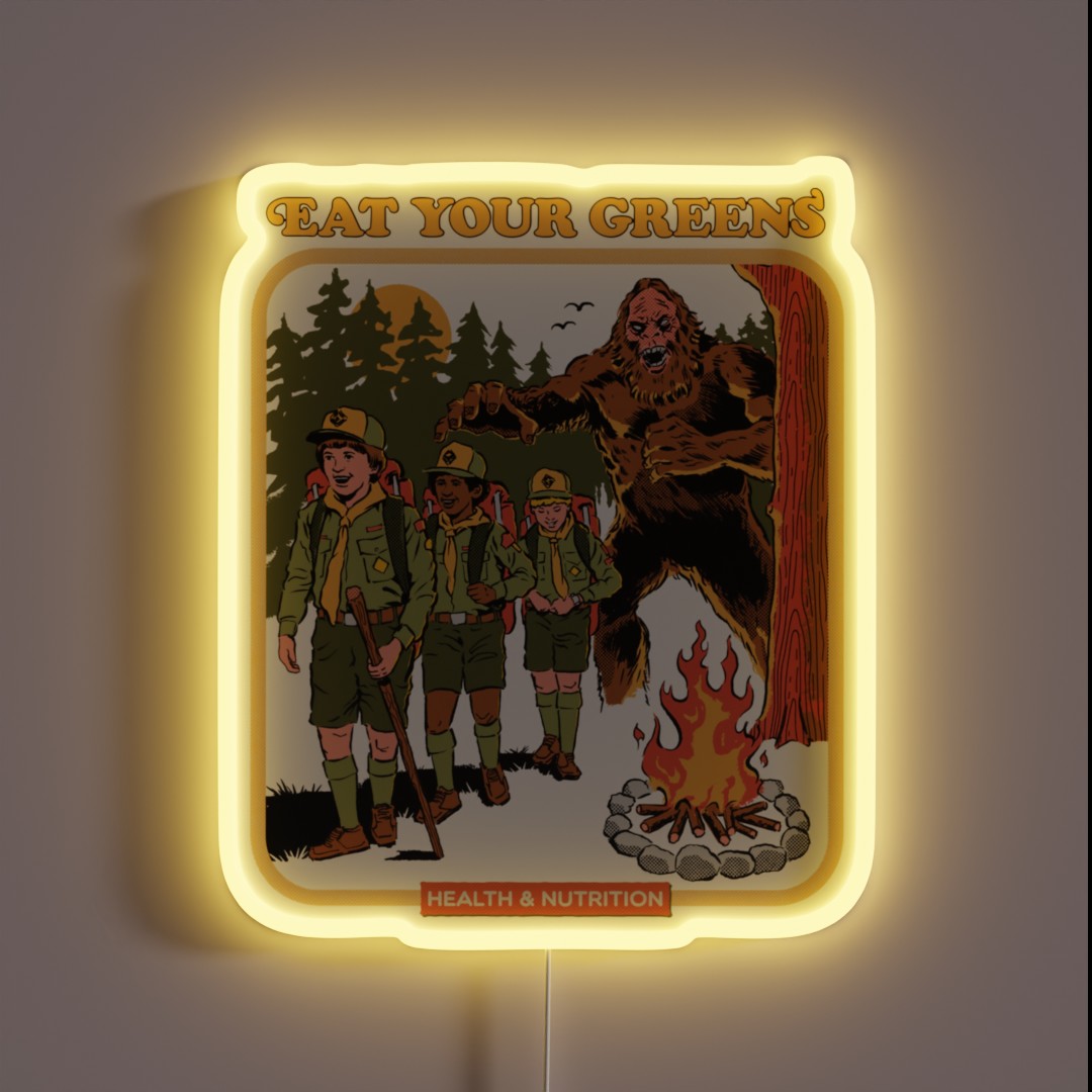 Vibrant RGB Neon Sign: ‘Eat Your Greens’ – A Fun and Whimsical Way to Encourage Healthy Habits in Your Kitchen.