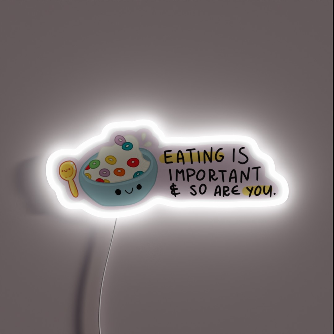 Nurture your mind, body, and soul with this vibrant reminder that eating well is crucial for a happy life! The “Eating is Important and So Are You” RGB neon sign is more than just a decorative piece – it’s a beacon of self-love and care.