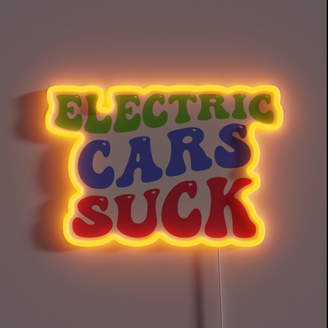 Electric Cars Suck Retro Groovy Funny RGB Neon Sign