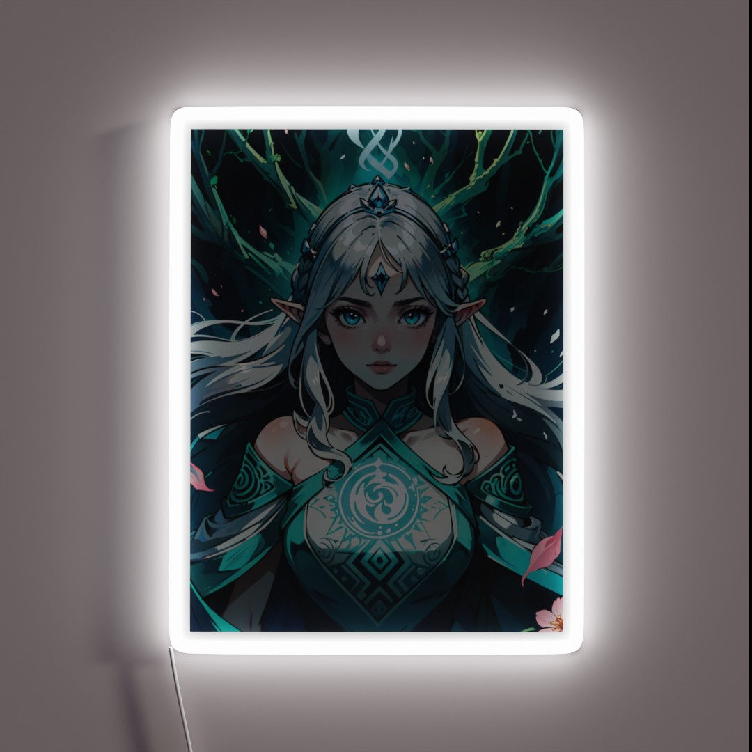 Elf Sorceress With Silver Braided Hair RGB Neon Sign