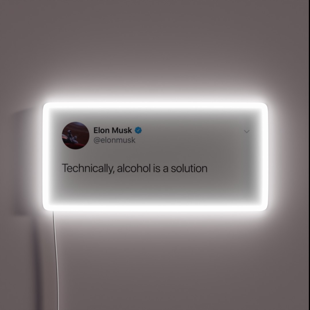 Officially licensed neon sign featuring Elon Musk’s iconic tweet in vibrant RGB colors, perfect for fans and collectors.
