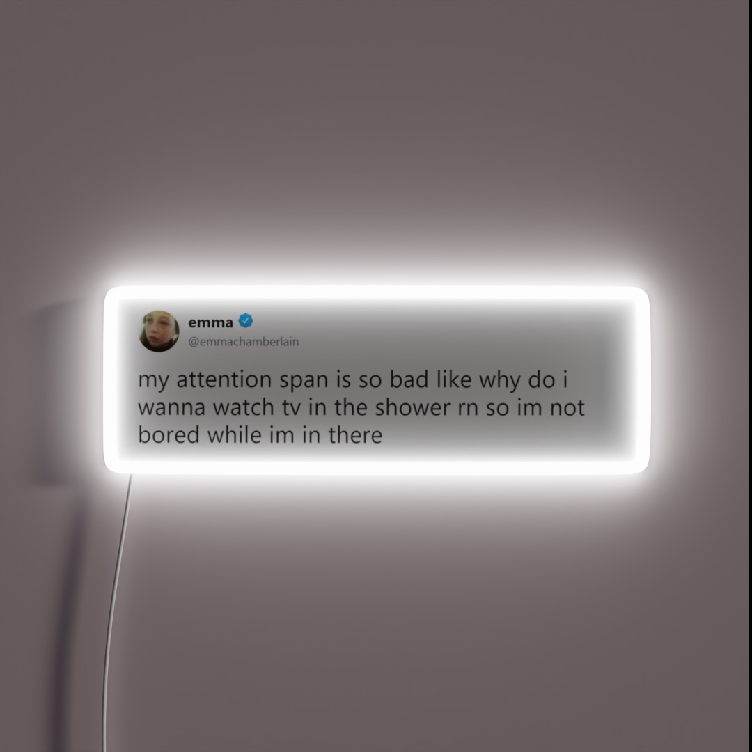 Bring the essence of Emma Chamberlain’s personality to your space with this RGB neon sign, featuring her iconic tweets in vibrant digital display.