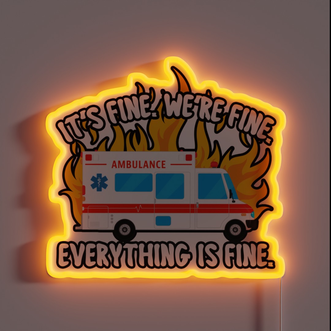Add a pop of color to your emergency room or ambulance with our ‘It’s Fine, We’re Fine’ EMT Paramedic EMS RGB Neon Sign, perfect for medical professionals and enthusiasts alike.