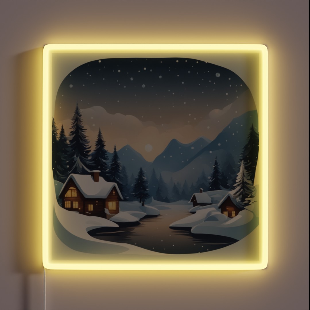 **Enchanting Christmas Snow Landscape Illustration RGB Neon Sign**