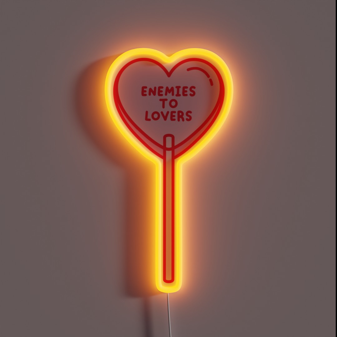 Bring the heat of a forbidden romance to your space with our Enemies To Lovers Lollipop RGB Neon Sign, a bold and vibrant declaration of passion and drama.