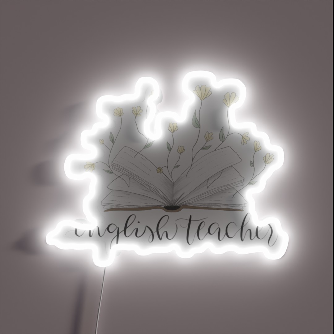 Add a touch of educational charm to any room with this unique English Teacher Floral Open Book RGB neon sign, featuring a colorful blend of flowers and books in a vibrant, eye-catching display.