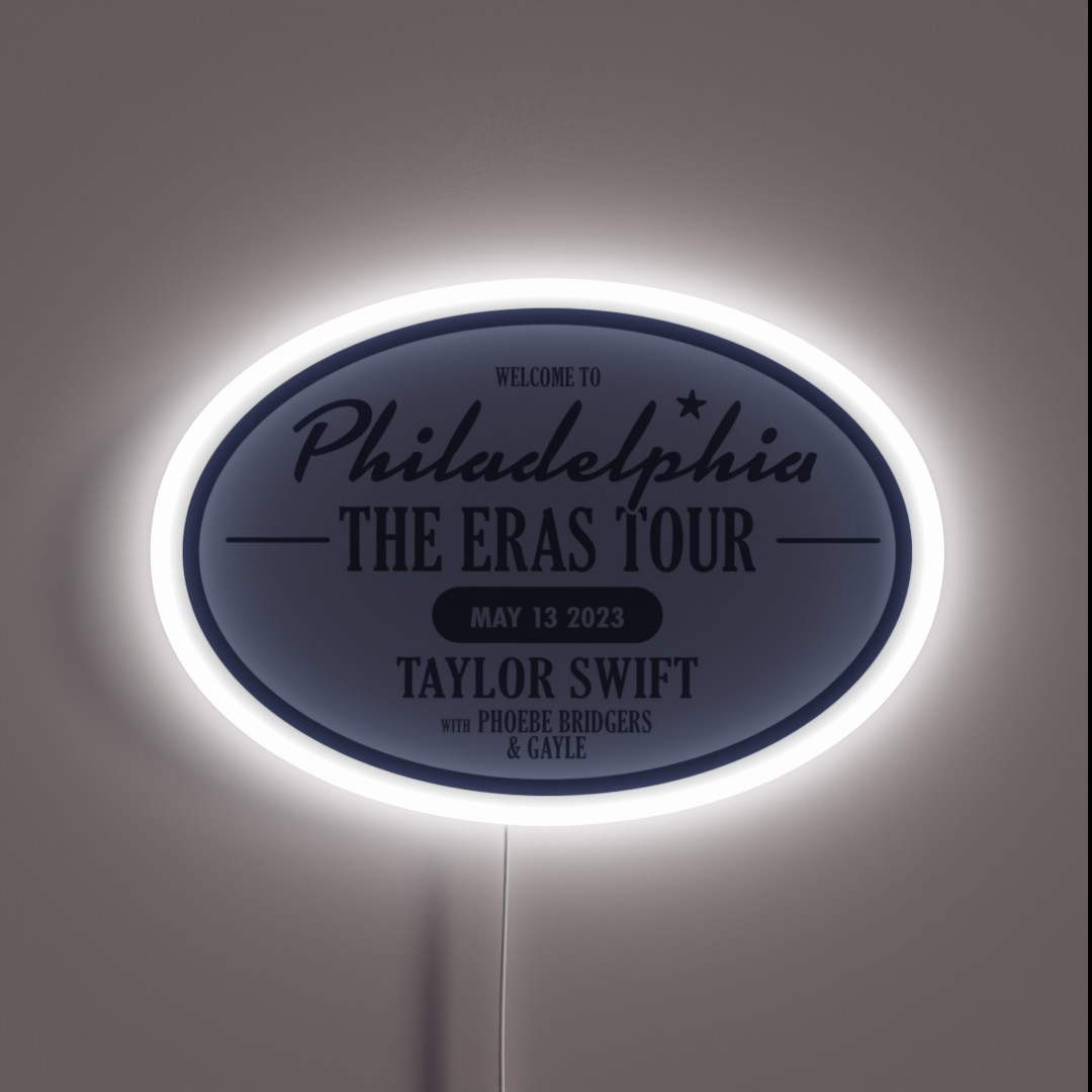 Authentic Eras Tour Philadelphia Night 2 May 13 3D RGB Neon Sign, a vibrant tribute to Taylor Swift’s historic concert, perfect for fans to illuminate their spaces with musical nostalgia.