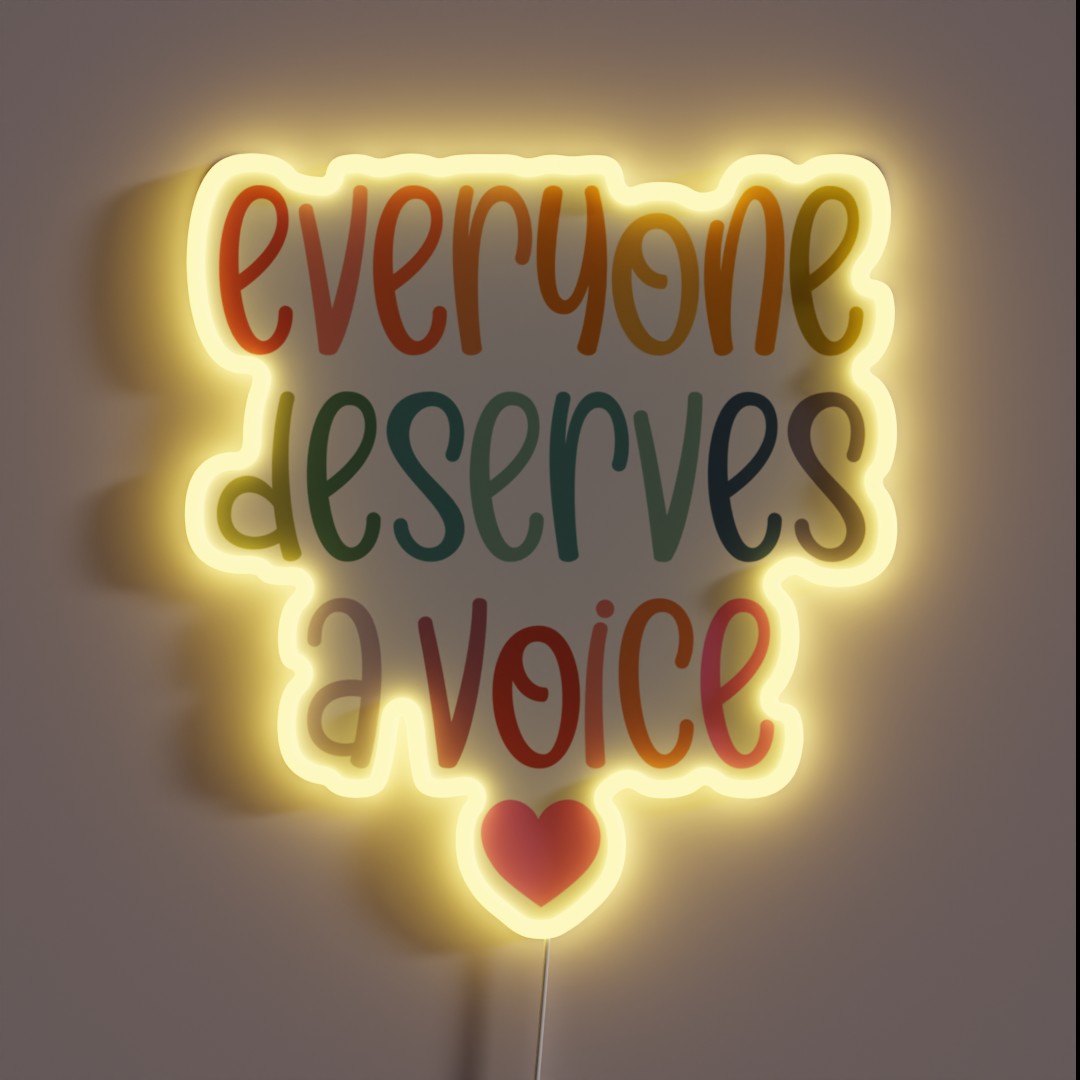 Add a touch of inclusivity and social justice to your space with our ‘Everyone Deserves A Voice’ RGB neon sign, promoting equality and amplifying marginalized voices.