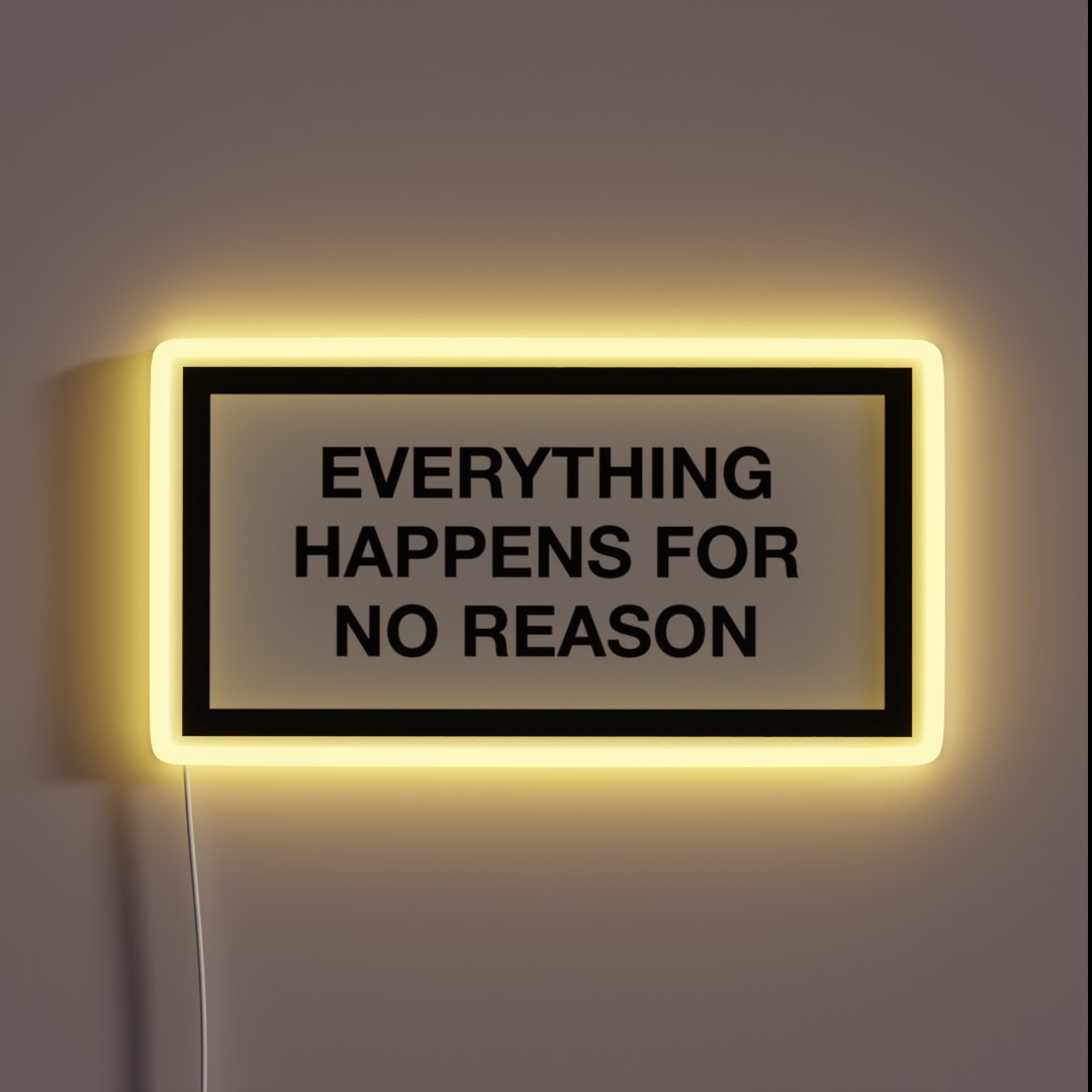 Add a touch of philosophical humor to your space with this thought-provoking RGB neon sign. The phrase “Everything Happens For No Reason” is emblazoned in bold, eye-catching letters that will spark conversation and inspire introspection.