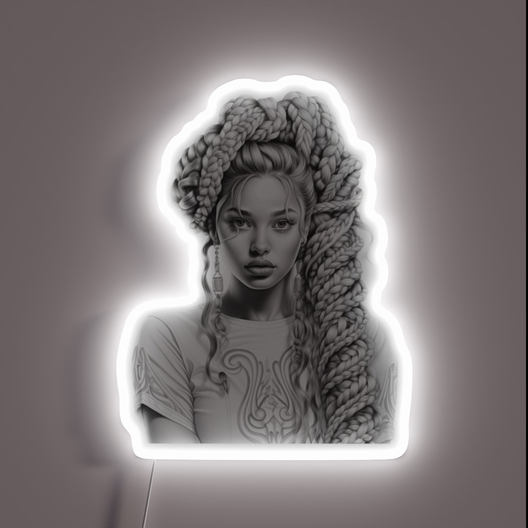 Expressive Drawing Of A Woman With Braided RGB Neon Sign
