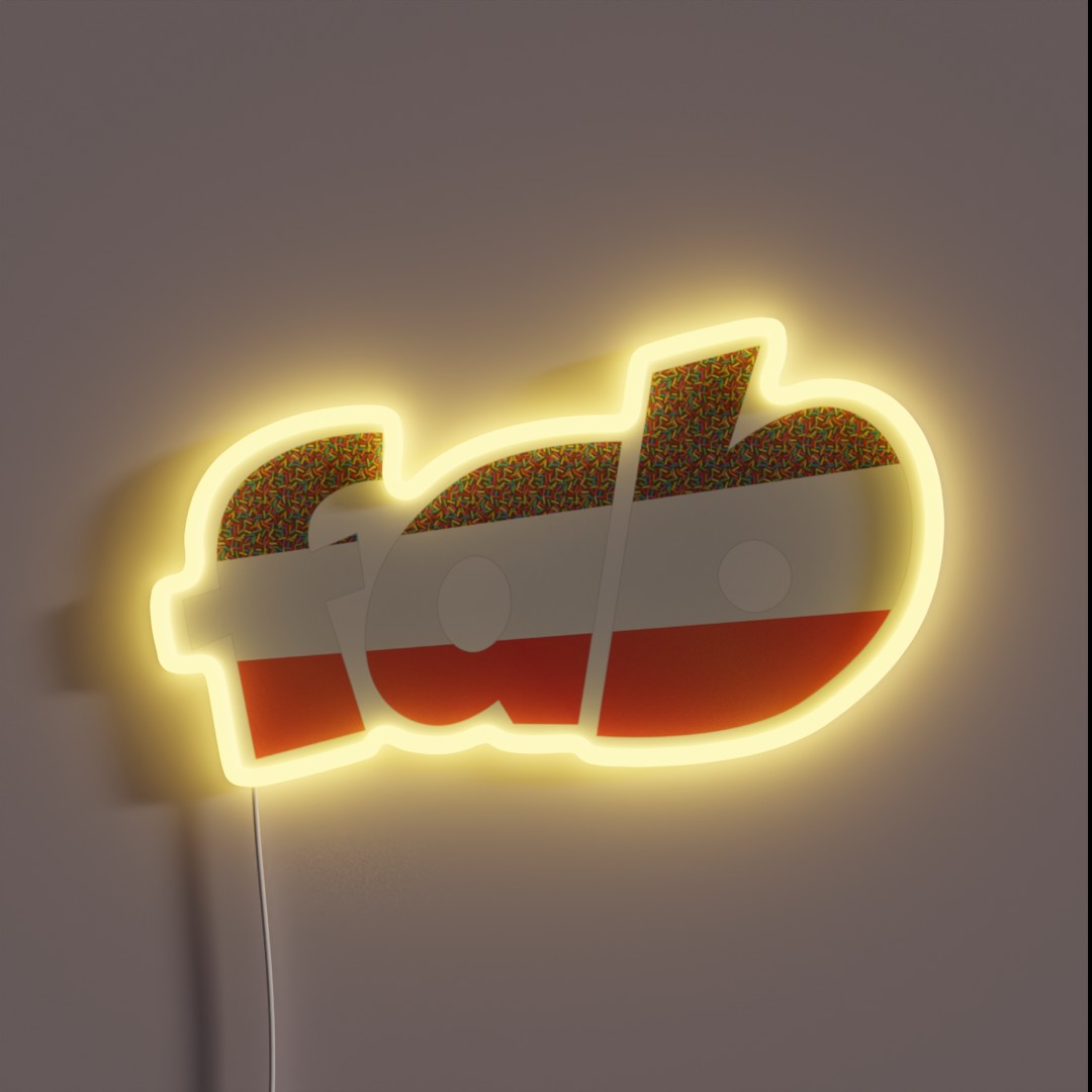Brighten up your space with this vibrant, RGB neon sign featuring the iconic phrase ‘Fab Ice Lolly’ in fun, playful word art graphics.
