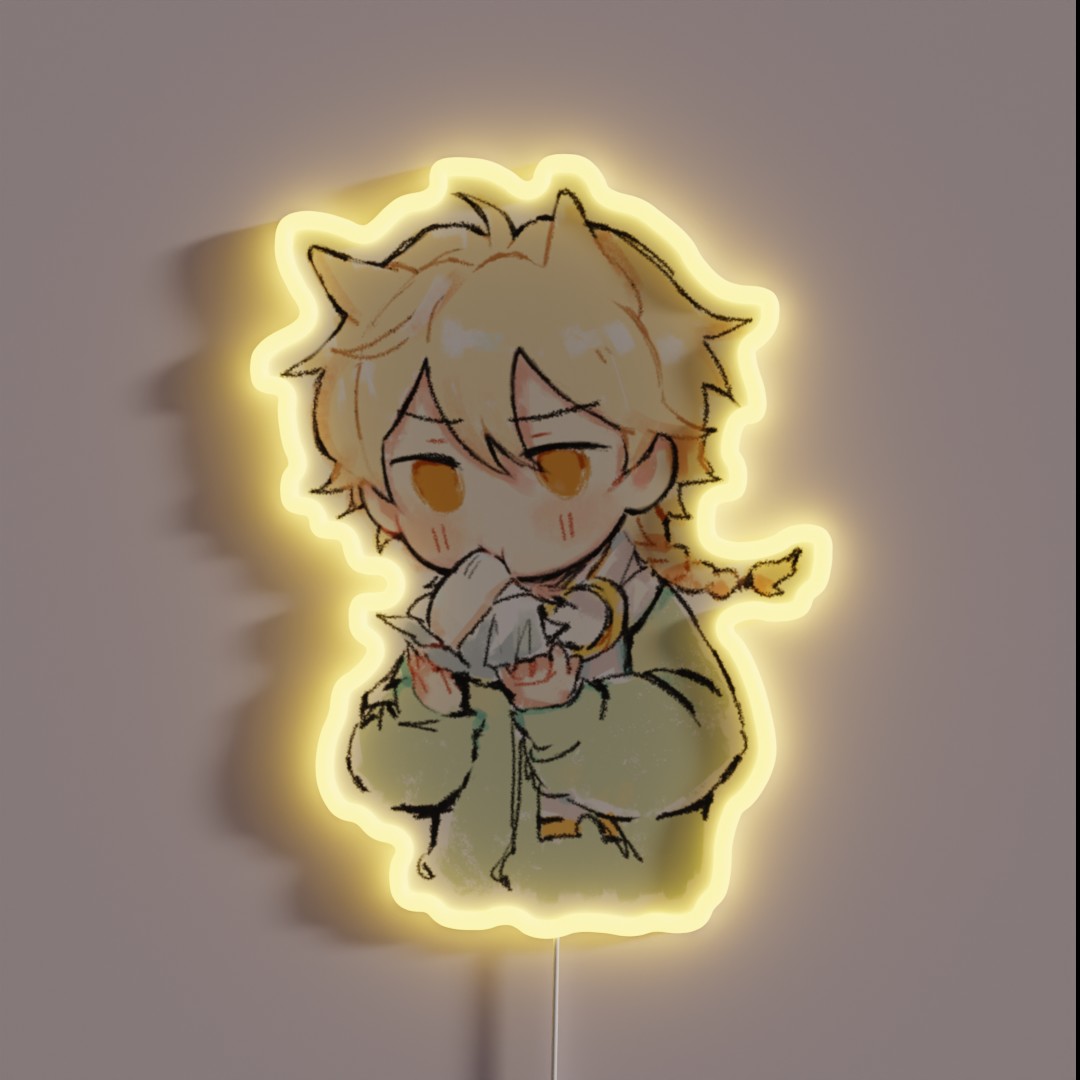 Add a touch of Teyvat magic to your space with this officially-inspired Fan-Made Genshin Impact Aether Kong Chibi RGB neon sign, featuring vibrant colors and intricate details that will delight any Liyue fan.