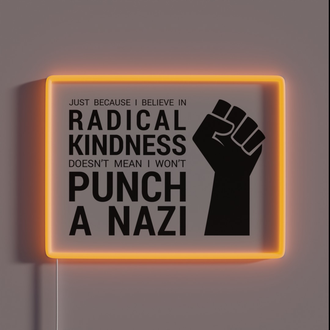 Stand against oppression with our Fight Fascism RGB neon sign, a bold statement piece for your home or office that shines brightly in the fight against tyranny and hatred.