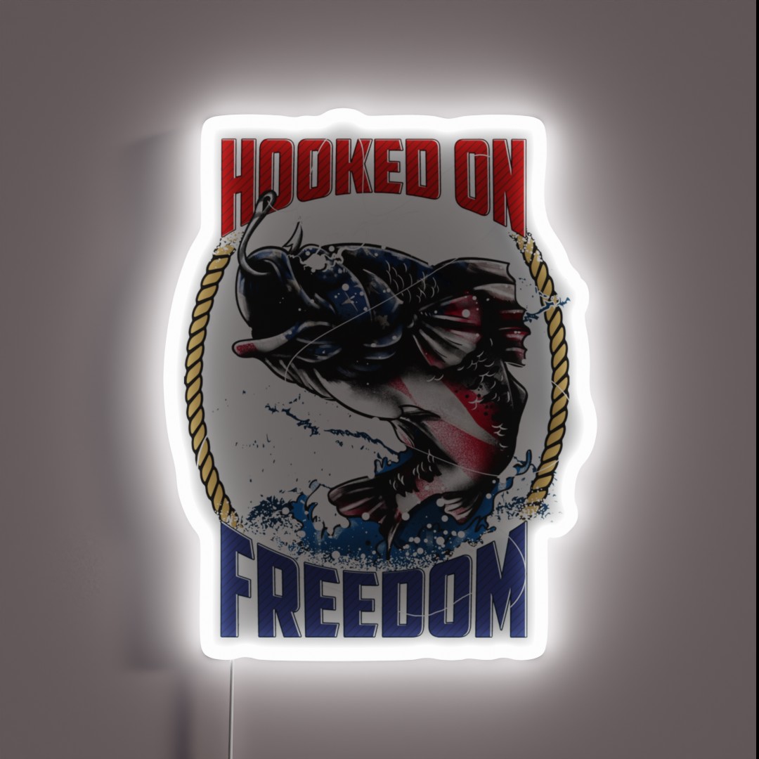 Fishing Hooked On Freedom Patriotic RGB Neon Sign