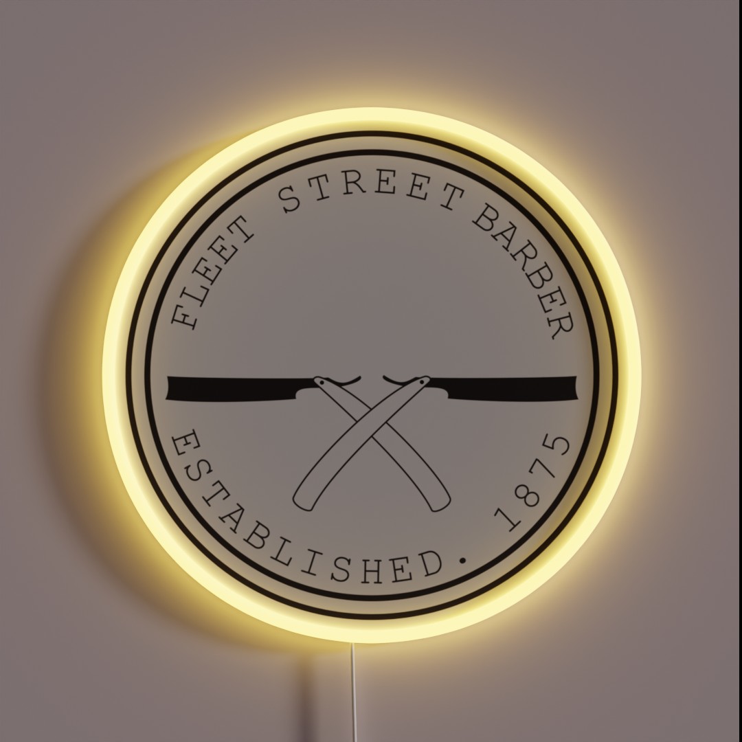 Elevate your barber shop’s style with our customizable Fleet Street Barber RGB neon sign, creating a vibrant and modern ambiance that showcases your brand’s personality.