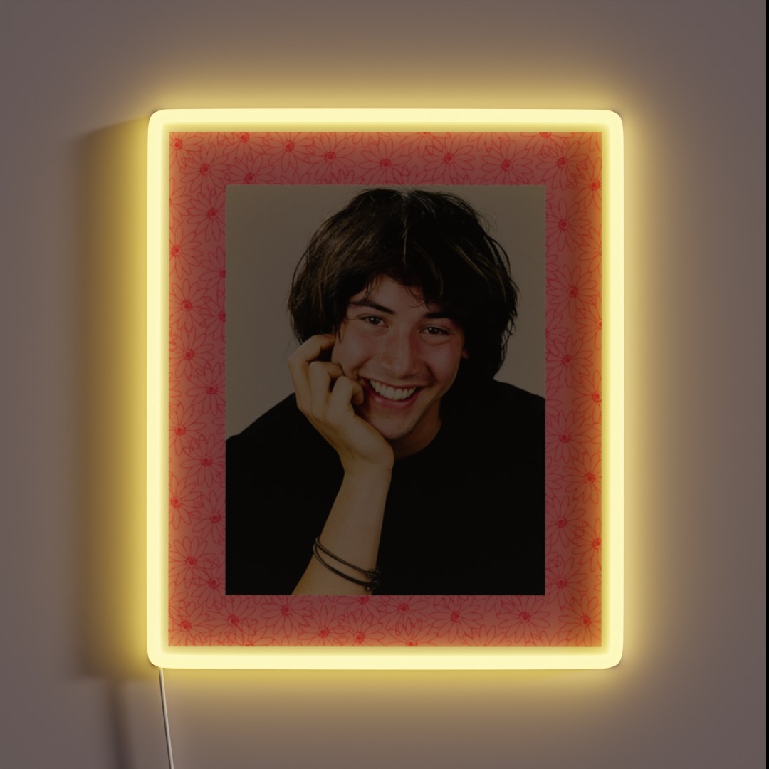 Add a touch of Hollywood glamour to your space with this one-of-a-kind Neon Sign featuring a stylized floral design inspired by Keanu Reeves’ iconic films, available in vibrant RGB colors.