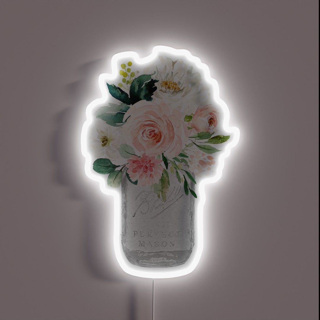Introducing the Floral Mason Jar RGB Neon Sign, a vibrant and unique decorative piece that combines modern LED technology with a classic mason jar design. This stunning sign features a beautiful floral pattern that shines bright in a range of colors, thanks to its RGB neon lights.