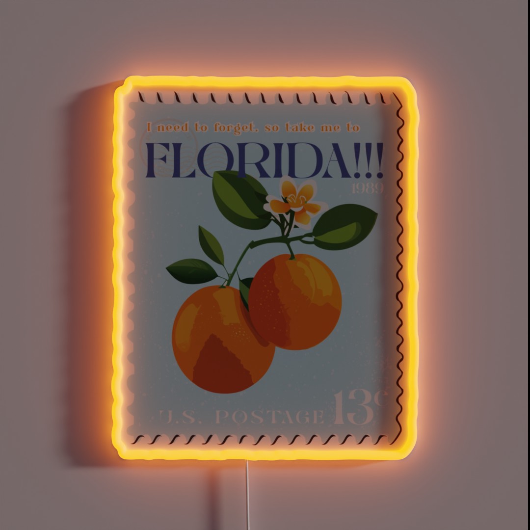 The Florida Postage Stamp design pays homage to the Sunshine State’s iconic imagery, bringing a touch of nostalgia and charm to any space. This neon sign is not just a decoration; it’s a statement piece that showcases your personality and love for Florida. Whether you’re a local or just a fan of the state, this RGB sign is sure to delight.