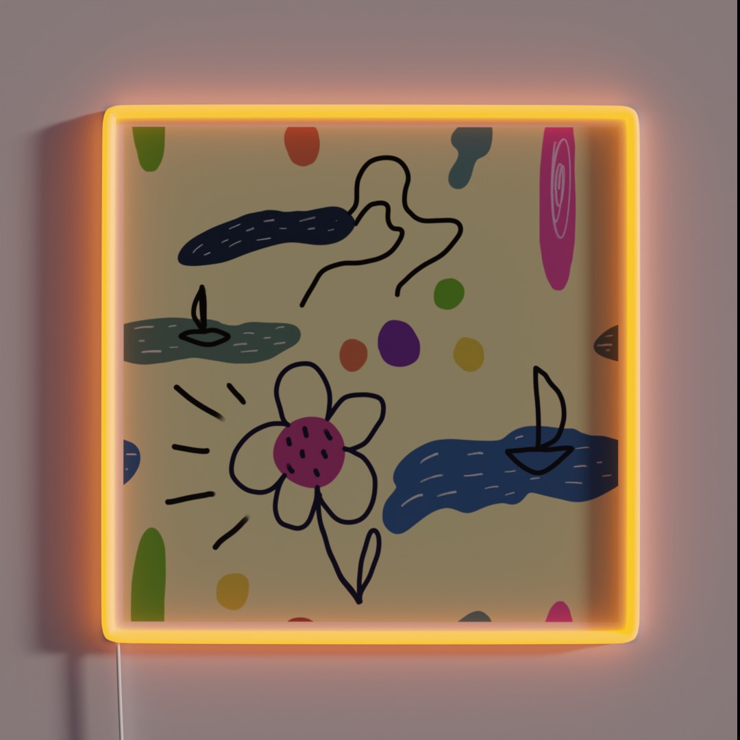 Flower Sea Scribble Cute Abstract Yellow RGB Neon Sign