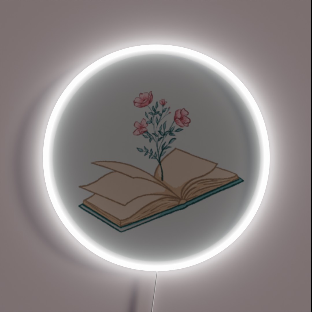 **Flowers Blooming from Open Book PopSocket RGB Neon Sign**