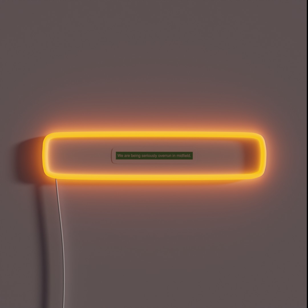 Add a touch of football fandom to your home decor with this vibrant Football Manager We’re Being Seriously Overrun in Midfield RGB neon sign, perfect for any fan’s game room or office.