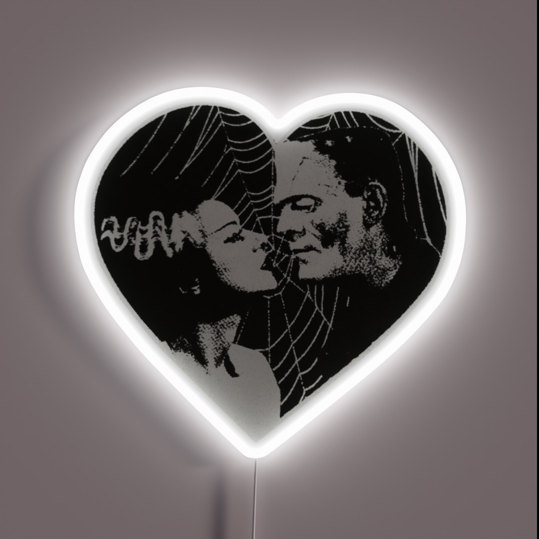 **Frankenstein and Bride Goth Emo Heart RGB Neon Sign**
