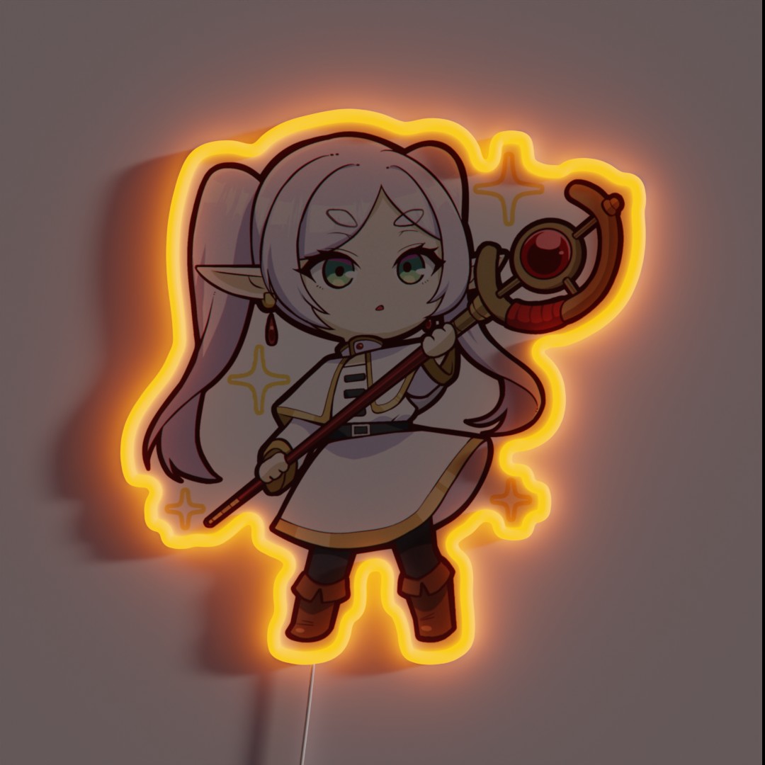 Bring vibrant life to your space with this compact Frieren Chibi RGB neon sign, showcasing a miniature version of the beloved character from the popular manga and anime series.