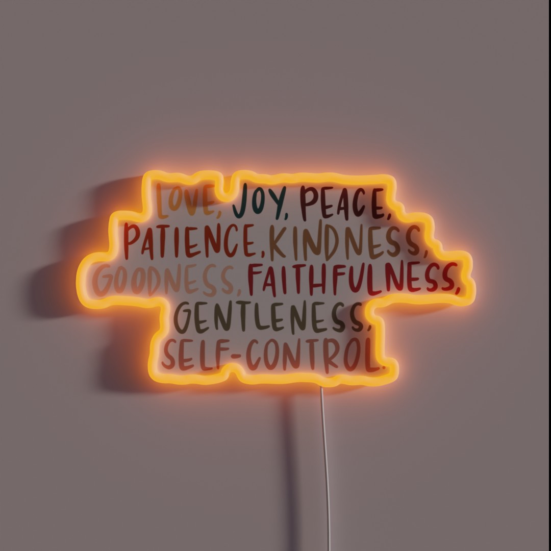 Add a touch of faith to your home decor with our Fruits Of The Spirit RGB neon sign, featuring vibrant colors and inspirational scripture that radiate kindness, love, and compassion.