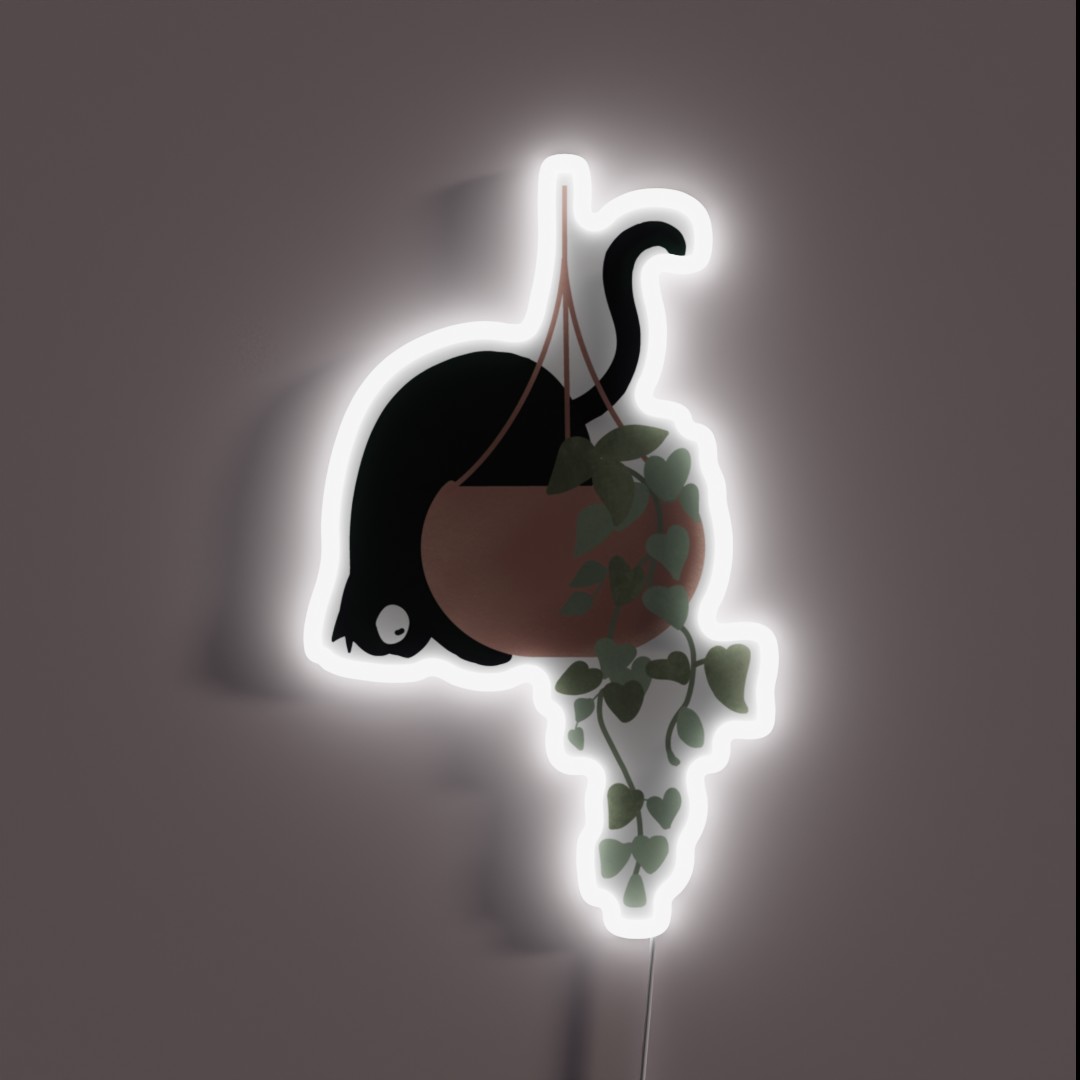 Funny Cat On A Hanging Plant RGB Neon Sign