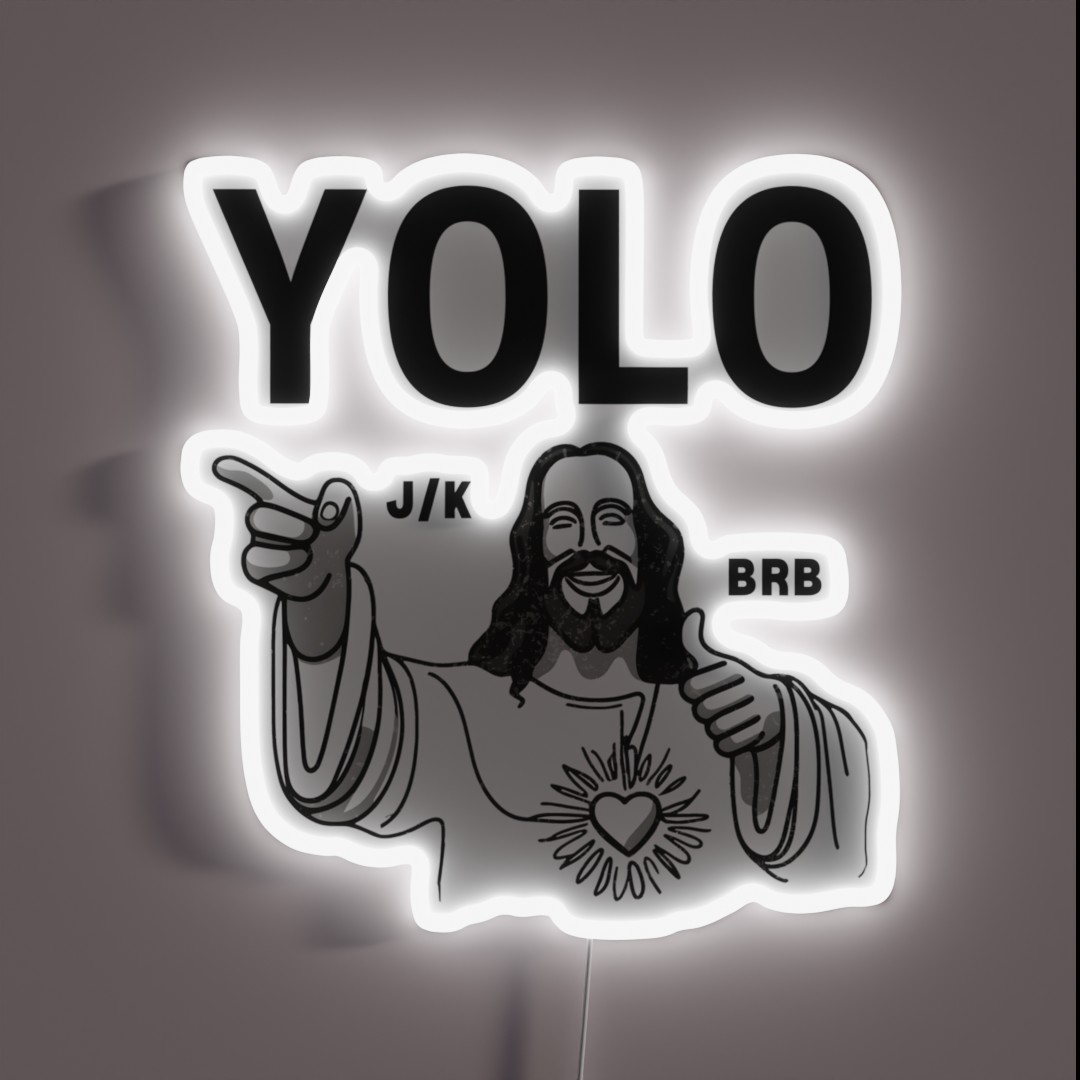 Add a dash of humor to your Easter decor with this hilarious LED neon sign featuring a funny Jesus meme saying ‘YOLO JK BRB RGB’ in bold, vibrant letters – perfect for a light-hearted and playful Easter celebration.