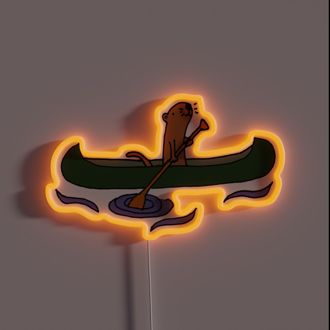 Add a dash of whimsy to your space with this vibrant Funny Funky Cool Sea Otter Canoeing RGB neon sign, featuring a playful sea otter paddling in style.