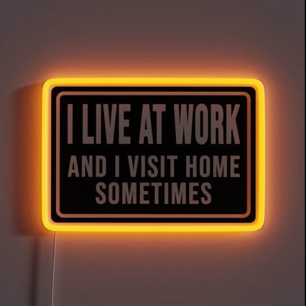 Whether you’re a quirky office mate, a humorous homeowner, or just someone who loves a good laugh, this sign is for you! So why not treat yourself (or a friend) to the ultimate statement piece? Order your “I Live at Work, I Visit Home Sometimes” RGB neon sign today and add some personality to your workspace or home.